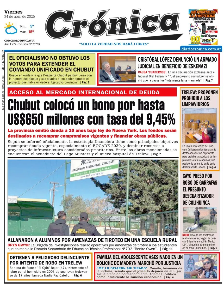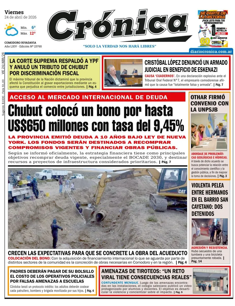 Nuestra tapa de la edición de Comodoro Rivadavia