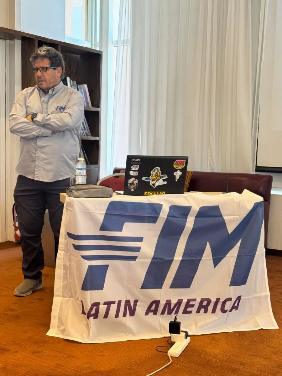 “El jueves, viernes y sábado de la semana pasada traje por primera vez a la Patagonia, en este caso a Puerto Madryn, el primer seminario de FIM LA, para capacitación de comisarios deportivos y dirección de carrera. Hice cuatro comisarios deportivos, Diego Aguilar, Adrián Ruiz, Leandro Aguilar, Alexis Carballo. Yo, renové la mía de comisario deportivo y a su vez pude rendir para director de carrera FIM LA. Del 80 por ciento mínimo que se necesitaba aprobé con el 93%, y me dieron la súper licencia de carrera FIM para la Latino América. Por lo tanto, puedo dirigir una carrera en cualquier país en América Latina que haga motocross. Soy el segundo oficial de carrera FIM LA en la Argentina y eso nos da mayor sabiduría para aplicar en el motociclismo”, asegura Jorge Bucemo.