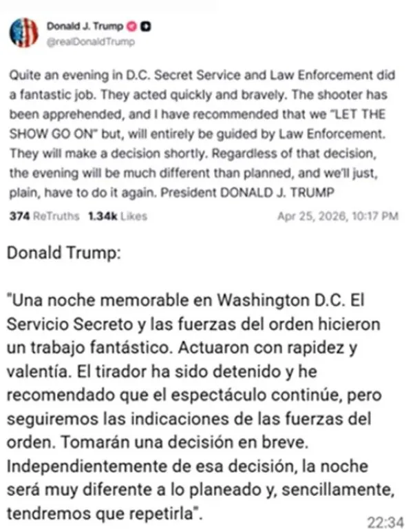 La cena de corresponsales es una de las citas políticas más relevantes de Washington. Tras la detención del sospechoso, los organizadores evaluaron la posibilidad de reanudar el encuentro, lo que se concretó cuando se confirmó la presencia del presidente para pronunciar su discurso.