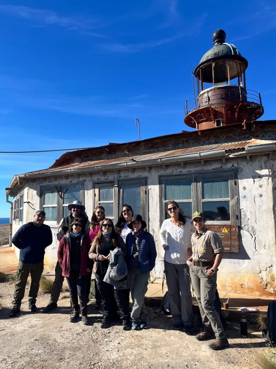 En primer lugar, se realizó una navegación junto a guardaparques, partiendo desde Bahía Arredondo hacia Isla Leones, con el acompañamiento de autoridades de la Municipalidad de Camarones. En el lugar se recorrió el sendero pedestre hasta el faro, relevando el estado del circuito y la cartelería interpretativa recientemente instalada, en una experiencia que puso en valor la articulación entre conservación y uso público.
