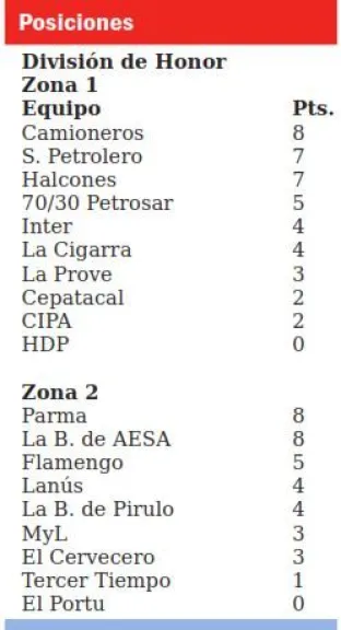 Sindicato Petrolero venció 3-0 a CIPA y Halcones también cumplió con su objetivo al imponerse 3-0 a La Prove. De esta manera, ambos escoltas quedaron muy cerca de Camioneros que, pese a no haber jugado en esta jornada, continúa liderando con ocho unidades.