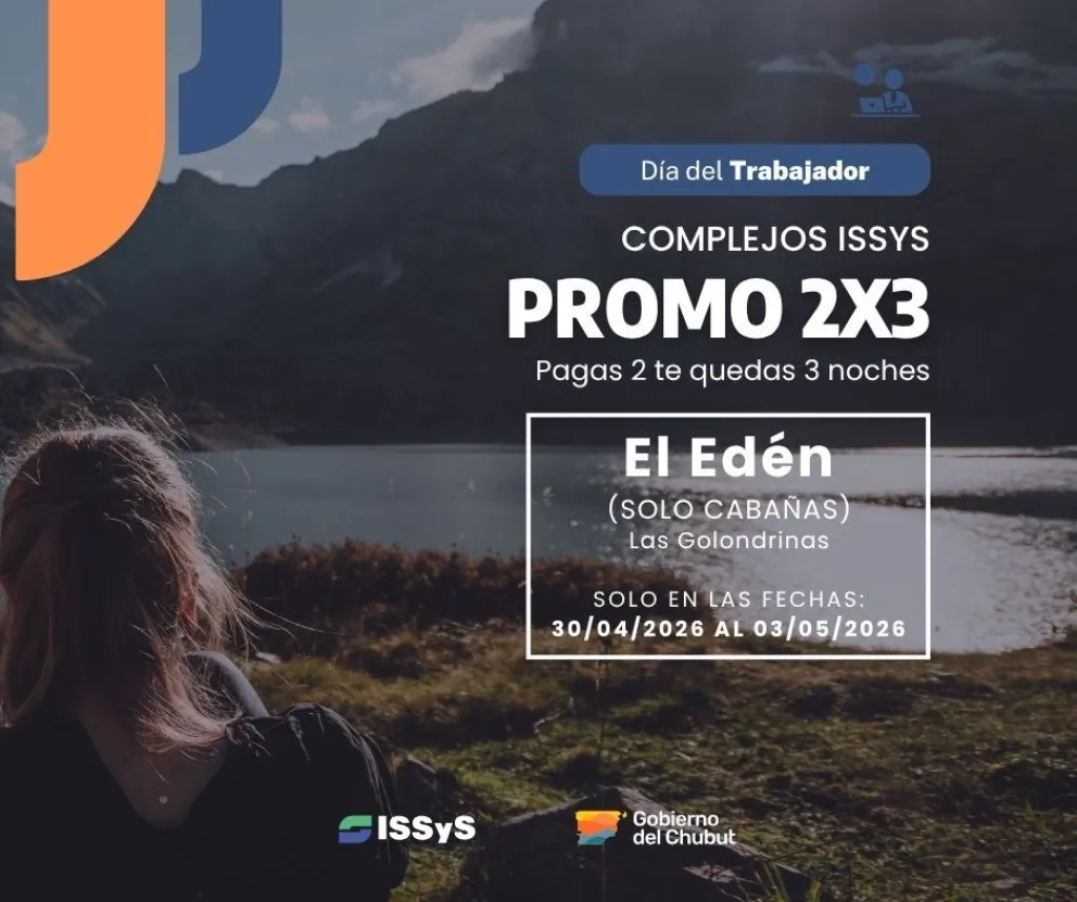El Instituto de Seguridad Social y Seguros del Chubut (ISSyS) puso en marcha para este fin de semana largo por el feriado provincial que corresponde al jueves 30 de abril y al Día del Trabajador viernes 1 de mayo, una promoción especial en sus complejos turísticos, destinada a afiliados que deseen disfrutar de beneficios exclusivos.